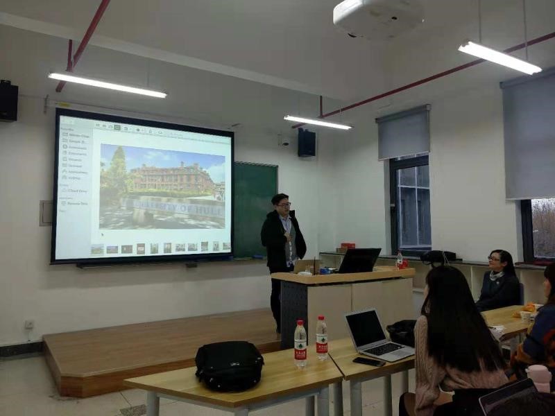 2018年11月27日,人文社会科学学院“文话沙龙”活动之“问道远航”专题活动暨知行研讨课第三讲在沙河校区J3-204举办。活动邀请了人文社会科学学院党委书记李亚梅副教授、行政管理系副主任陈文博老师作为主讲人,人文学院雪城大学暑期学校的参与者2015级本科生王欣驰同学作为学生代表也进行了经验分享。本次活动的主题为“漫谈寰宇,问道访学——国际交流与国际视野”,聚焦分享海外留学经历,开拓国际视野,帮助同学确立求学目标与深造方向。知行书院2017级、2018级不同专业的30余名学生参加了本次活动。