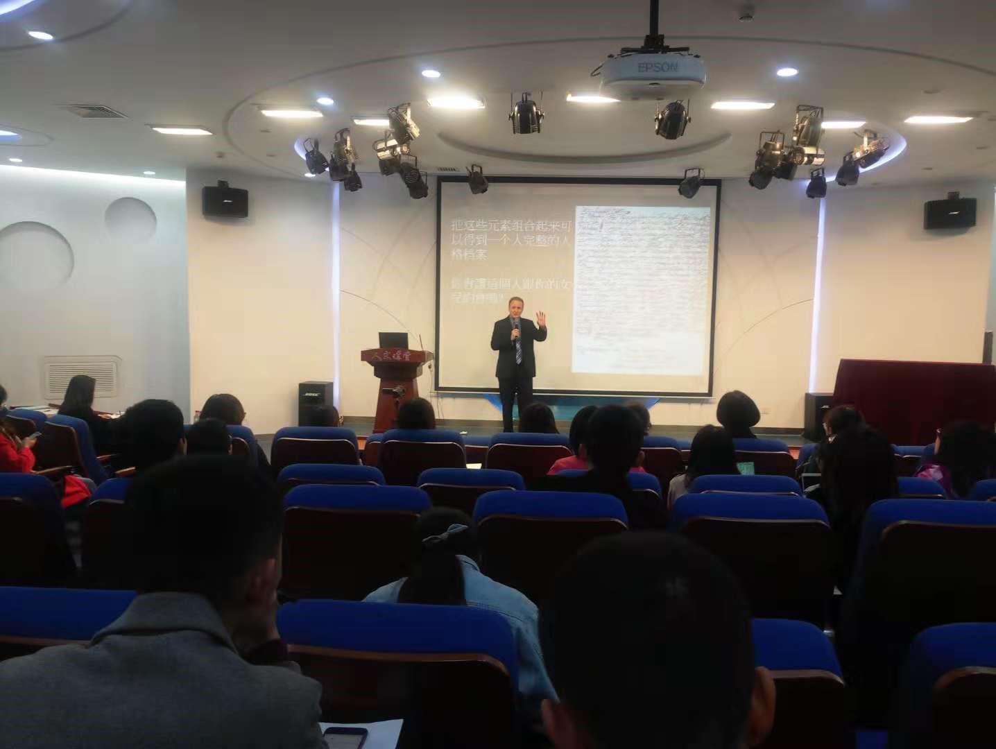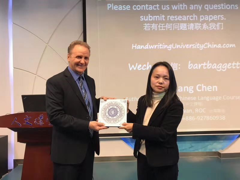 2018年10月30日星期二上午,三升体育网站在人文讲堂成功举办主题为《笔迹心理分析在美国的发展与应用》的讲座,主讲人为心理学系主任邓丽芳教授邀请的美国著名笔迹心理分析与笔迹鉴定专家Bart A Baggett 博士。Bart A Baggett 用风趣幽默的语言为我们讲解了笔迹分析在商业管理、心理测量与人才测评、司法与犯罪、心理矫正等领域的应用与发展。
