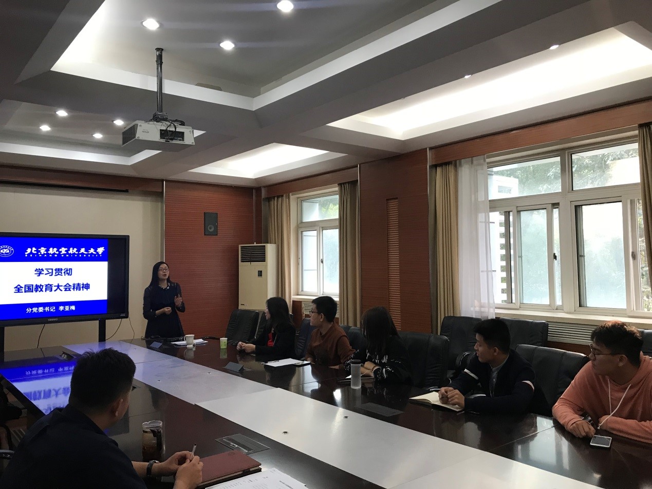 9月28日下午,三升体育网站在202会议室召开学工会议,党委书记李亚梅宣讲全国教育大会精神,党委副书记张驰、专职辅导员张晓明、本科生和研究生辅导员参加会议。