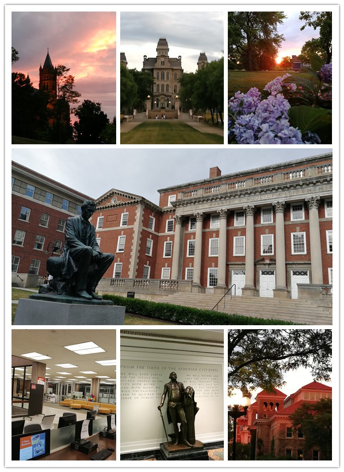 美国时间8:00,组织团队成员准时在宿舍Mariana楼门口集合。雪城大学翻译郑博与张佳翼学长如约而至,一路带我们参观校园。在Maxwell学院的林肯像旁,为我们讲述了这所学院从困境中坚持自我、严谨治学的建校历史和发展进程。体会感悟:广阔、美丽、干净、静谧的雪城大学校园总是让人沉醉其中,流连忘返,校园建筑极具特色和历史沉淀(如空难纪念花园、杜聿明设计的建筑、林肯雕像等),绿草如茵的草地上的小松鼠就在我们身旁蹦蹦跳跳、敏捷可爱,不时有老鹰盘旋上空,好一个古典与现代并存、诗意盎然而又安谧适合学习的世界!