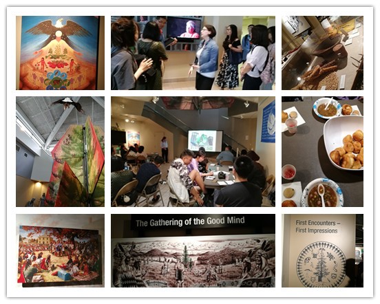 接着,大家前往奥侬达噶大和平法中心参观,中心的负责人结合图片和文物,生动而又形象地给大家讲述了由奥侬达嘎等六个部落组成的易洛魁部落联盟的由来,介绍了部落与欧洲之间的关系,也和大家分享了感恩自然这一部落文化的延续和部落居民致力于环境保护和为全球原住民维权的贡献,以上为大家更好地了解案例提供了历史背景。同时,中心还为大家提供了奥侬达嘎传统的午餐,三姐妹汤和草莓水,代表着文化的传承。