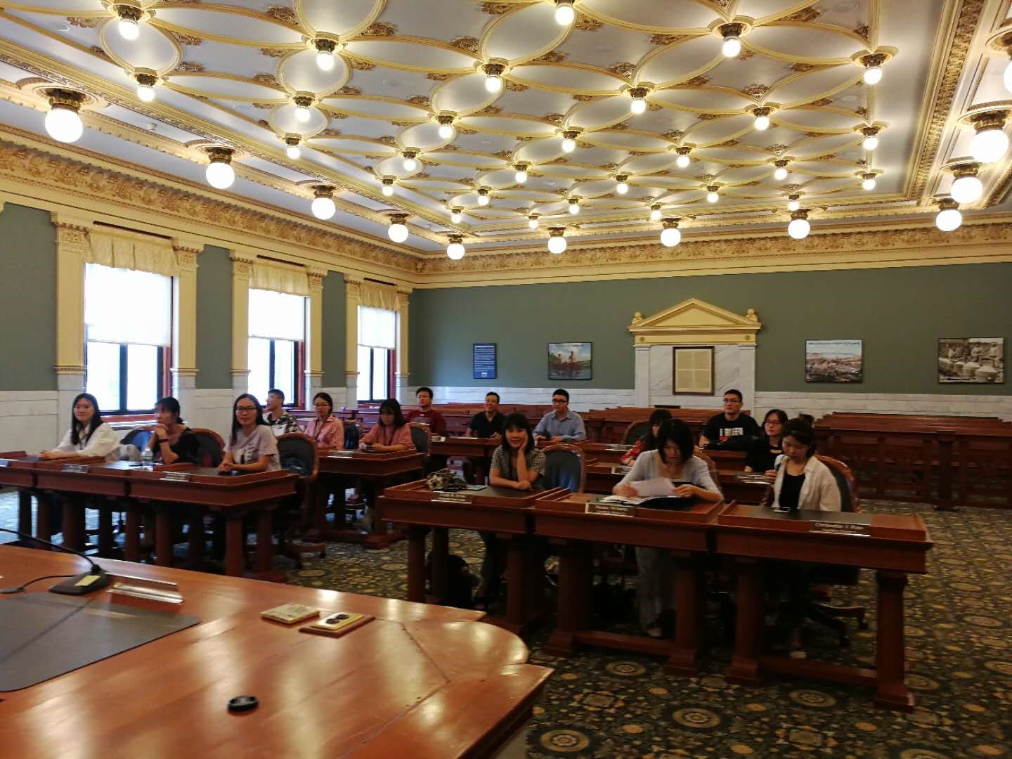 接着,我们前往卡泽诺维亚镇政府实地参观,当地镇书记官、税务员兼统计员桑德曼女士详细为大家讲解了镇政府的职能和工作流程。同学们踊跃提问,桑德曼女士耐心为我们答疑解惑。体会感悟:我感叹一个小小的镇有如此精密的治理机构,小到能捕猎哪个种类的鱼、捕猎多大尺寸的鱼都有严格规定和专人管理。如此精密严谨细致入微的地方政府治理,是与美国极强的公民自治能力和高效的地方治理能力分不开的。