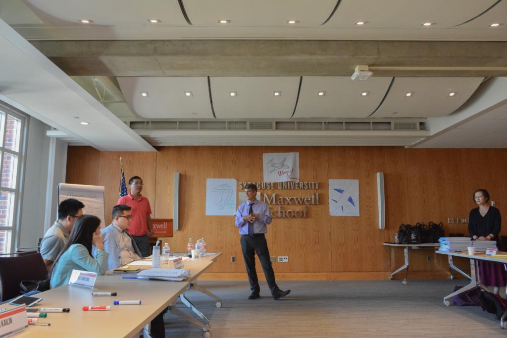 冲突与协作项目主任、高级公共管理教育副主任杰勒德老师要求大家在结业之前,把最想要留在锡拉丘兹大学的东西画下来。同学们集思广益、发挥想象力,经过热烈的讨论,将想法画在了纸上并进行展示,为雪城大学和麦克斯威尔学院送上有象征意义的“创意礼物”。
