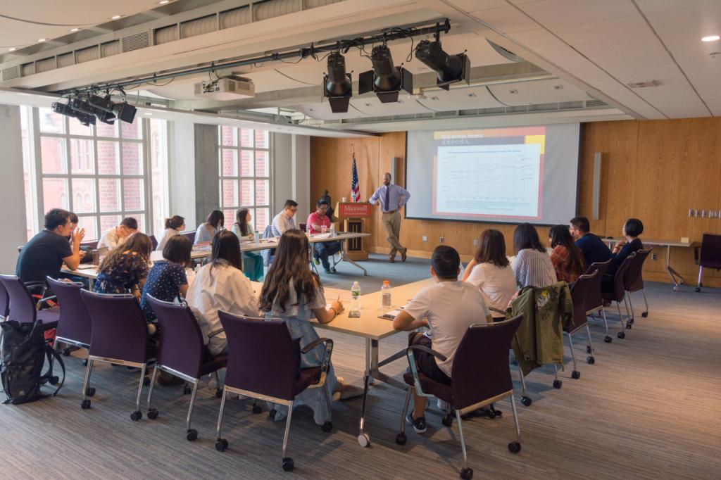 8月27日上午,在雪城大学Maxwell学院,由公共管理与国际事务系教授、政策研究中心主任洛波博士(Dr. Leonard Loppo)讲授“美国的贫困与社会福利政策”。教授首先定义了贫困,即表示一个人不能够维持最低的生活标准。接着介绍了美国贫困的地理和族群分布、原因和相关理论,同时研究了美国在联邦政府层面,针对贫困制定的一系列公共政策,包括社会保障、收入所得地税、医疗保险和医疗救助等,并在此后十五年甚至更长时间范围内研讨了这些政策的有效性。通过事例表明,政府制定公共政策时的善意,并非都能带来好的结果。