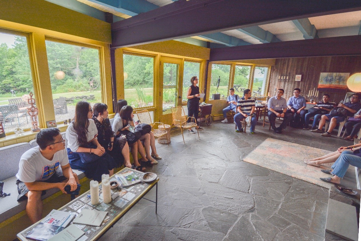 室内学习结束后,我们集体乘车来到了Stone Quarry Hill艺术公园,这里原本是一对已逝艺术家夫妇的私人住宅,后来逐渐发展为一个致力于艺术发展、在当地颇有影响力的非政府组织。采石山雕塑公园访客服务与公园推广专员泰尔基麦慈女士详细介绍了该公园的组织架构和面临的问题,并且提出了一些富有创意的解决方法。
