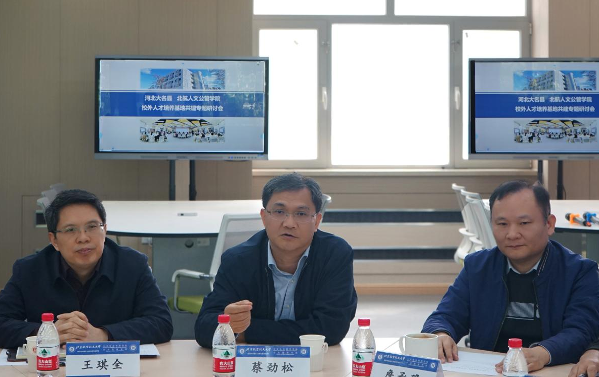 2024年4月15日上午,河北大名县委书记高巍、副县长付前瑞一行来三升体育网站进行校外人才培养基地共建情况专题调研,北航人文公管学院院长蔡劲松、党委书记王琪全、副院长詹承豫、党委副书记方志、行政管理系教师李健、经济系教师牛朝辉出席座谈会,会议由学院院长蔡劲松主持。