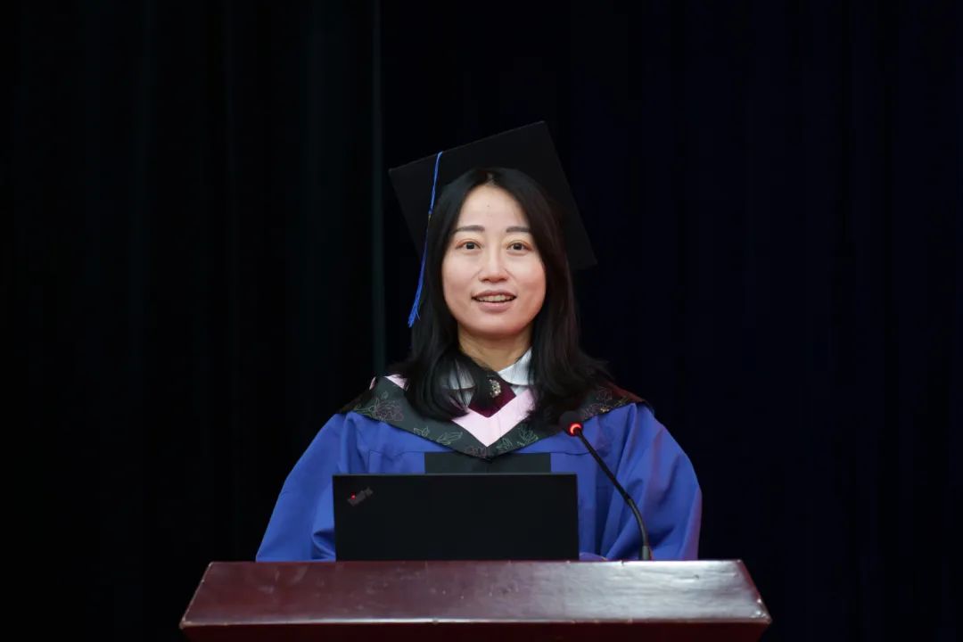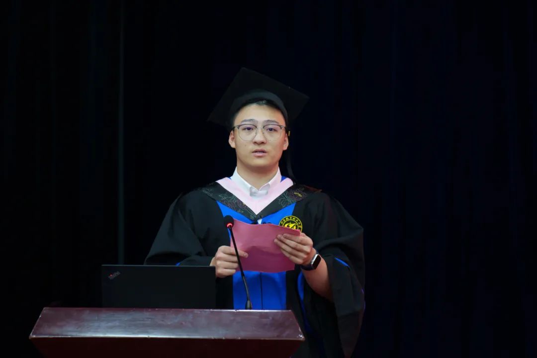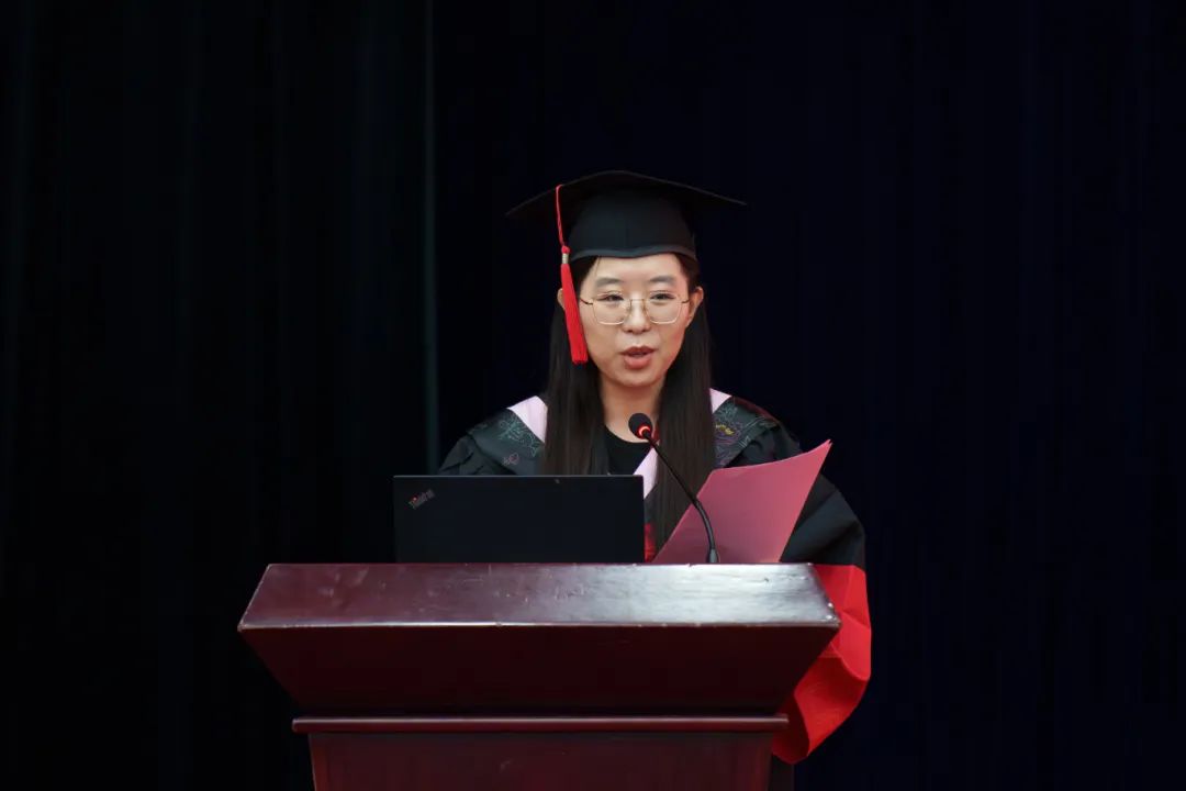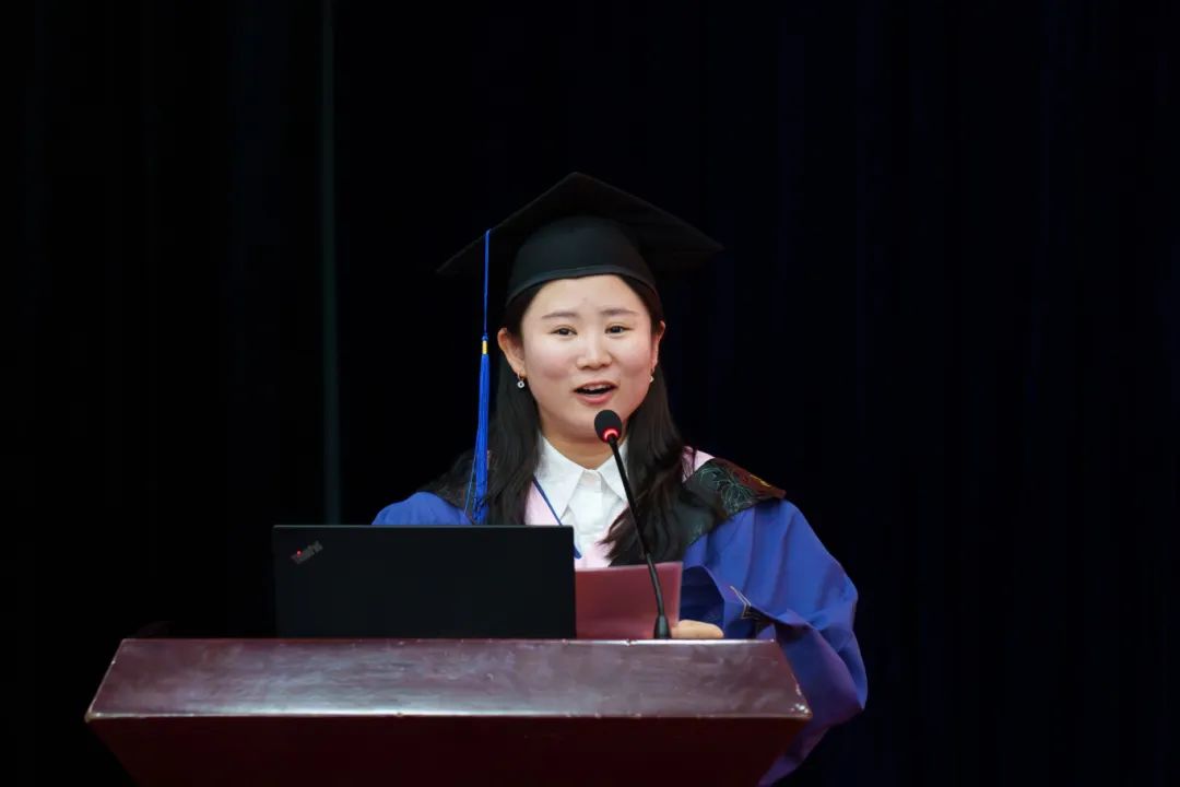 硕士毕业生代表任书瑶同学感恩学校和学院的用心培养,庆幸师长和同学的无私陪伴。