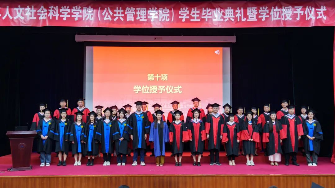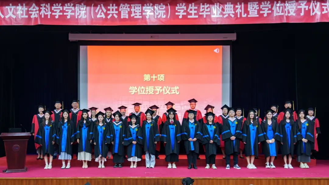 近日,人文公管学院在学术交流厅隆重举行2024年人文社会科学学院学生毕业典礼暨学位授予仪式,送别学院461名本硕博毕业生逐梦启航。学院院长蔡劲松,党委书记王琪全,党委副书记方志,院长助理聂晨,学科方向带头人李亚、韩霞、雷庆、马永红、邓丽芳、吴瑞林、孙琳琳,行政管理系系主任涂晓芳,行政管理系党支部书记刘亚娜,经济系系主任何平林,经济系党支部书记张佳书,教师发言代表李健,2020级本科生班主任赵丽鹏,以及学生工作办公室、教务办公室、MPA教育中心的教师、辅导员和2024届毕业生出席本次典礼。方志副书记主持毕业典礼暨学位授予仪式。