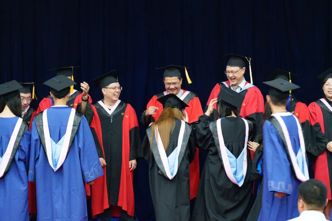 最后,学院导师代表为461名人文公管学子拨苏正冠,见证毕业生们的荣耀时刻,并与学院楼前进行毕业合影留念。