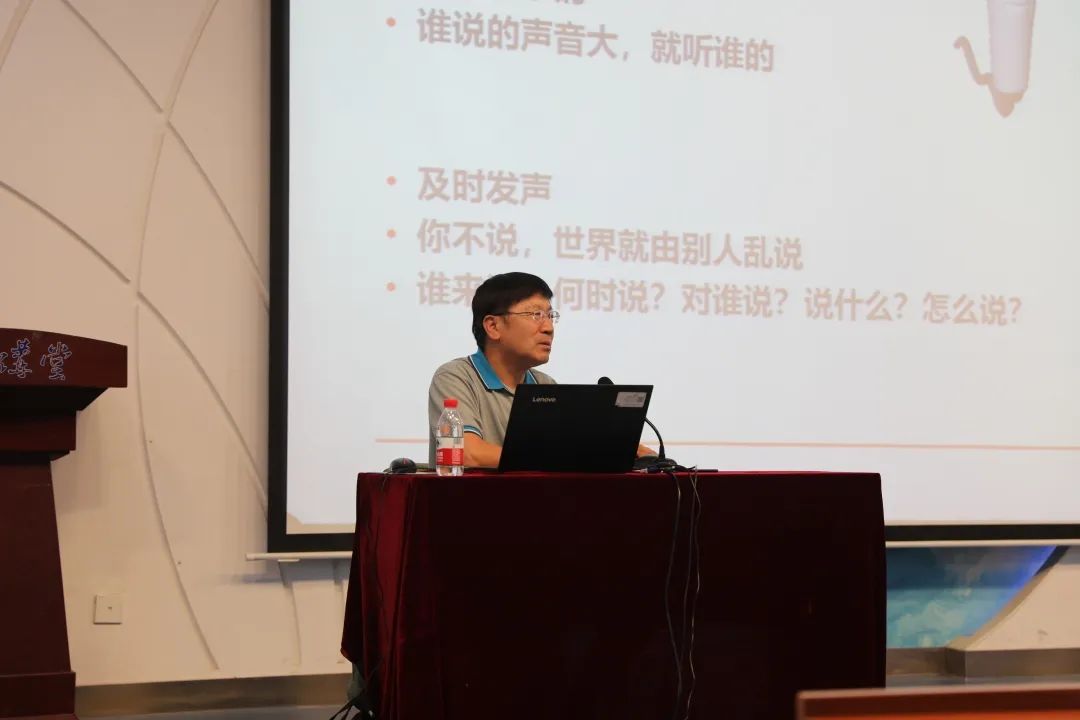铁铮教授指出,新时代是一个人人传播的时代,网民规模不断扩大;新时代是一个话语权时代,话语权就是影响力,在话语表达中要运用相关技巧并注意事项;新时代是一个品牌时代,要注重品牌的建设;新时代是一个媒介时代,要加强对于舆情的管理和危机的应对,掌握好主流声音。