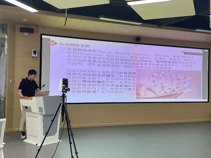 第二讲由人文公管学院应急管理专业博士生刘聪介绍社会网络分析的理论和应用。首先在社会网络分析概述部分,刘聪为大家系统地介绍了社会网络分析的基本概念和原理,包括图形表达、测量指标等,讲解了这一研究领域的核心内容。随后通过对Ucinet软件的简要介绍,以及实际操作演示,让同学们对如何利用软件进行数据处理和可视化有了更直观的认识。在案例研究与实证分析部分,刘聪以文章《公共安全数据协同治理的逻辑框架与网络形式——以兰州市食品安全领域为例》为案例,讲述了该研究的行文逻辑、相关理论、数据处理等,介绍了公共安全数据协同活动模型与治理框架,整体网络的构成与可视化、节点影响路分析、凝聚子群分析等。刘聪的分享内容丰富全面,方法灵活实用,为大家打开了一扇新的研究视野,也激发了大家进一步探索和应用社会网络分析方法的热情。