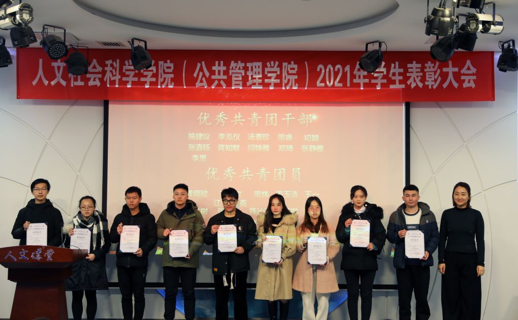 1月9日上午,人文社会科学学院2021年学生表彰大会在人文讲堂顺利召开,学院院长蔡劲松,党委书记王琪全,副院长任丙强,党委副书记张驰,副院长陈文博,分团委书记黄焘,教师代表刘扬、郭力、赵丽波,以及专职辅导员张同玉出席本次活动,活动由研究生骨干张允涵主持。