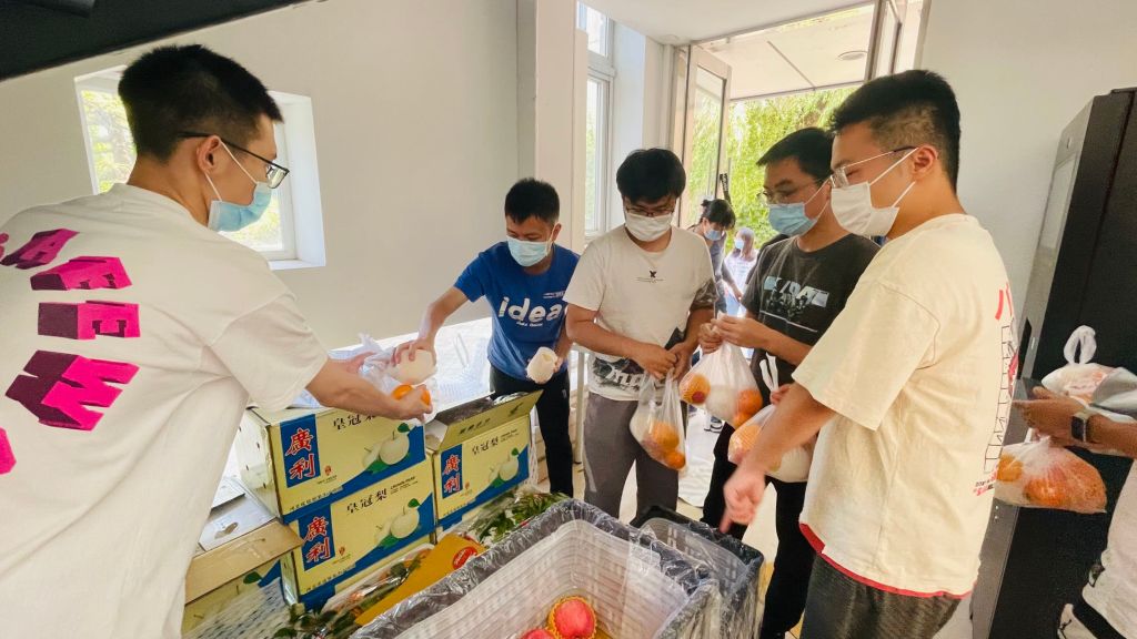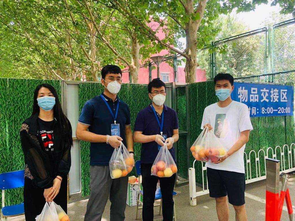 学院为全体在校学子精心准备了水果和饮料组成的爱心大礼包,已于5月26日逐一送到了学院每一位在校学生手中。手捧暖心礼包的周映玥讲到:“都是特别需要的物资,学院太赞啦!在水果的‘鼓励’下,我们大家一起再撑一撑、宅一宅,北京加油!”此外,学院也为校园“物品交换缓冲区”值守的老师和学生干部们送去水果,感谢他们为校园防疫的坚守和付出!