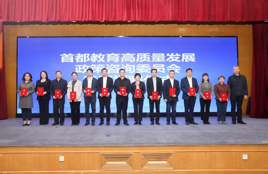 北京市委教育工委副书记沈千帆为首都教育高质量发展政策咨询委员会京内外专家代表授予聘书,三升体育网站刘亚娜教授、赵世奎教授、刘贤伟副教授受聘担任政策咨询委员会专家。