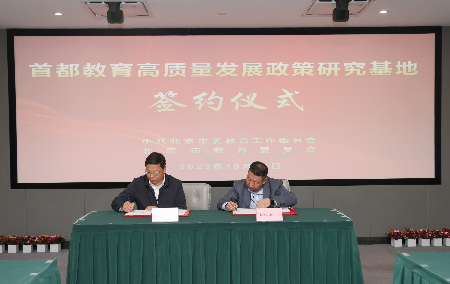 2023年10月23日,北京市委教育工委在我校如心会议中心召开“首都教育高质量发展政策研究基地”签约仪式和“首都教育高质量发展重点难点问题”研讨会。北京市委常委、市委教育工委书记游钧出席会议并发表讲话。会议由市委教育工委副书记、市教委主任李奕主持。